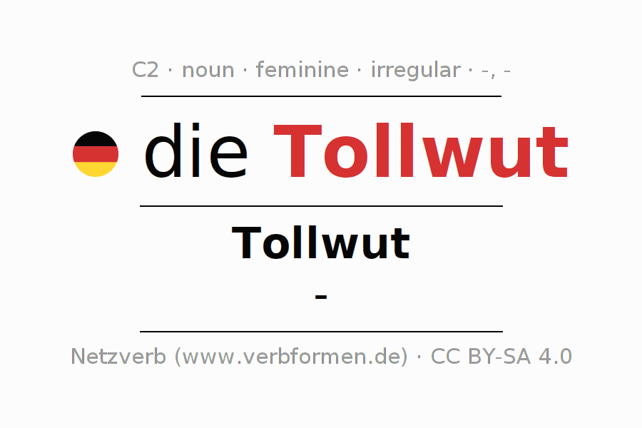 - Singular: die Tollwut, der Tollwut, der Tollwut, die Tollwut