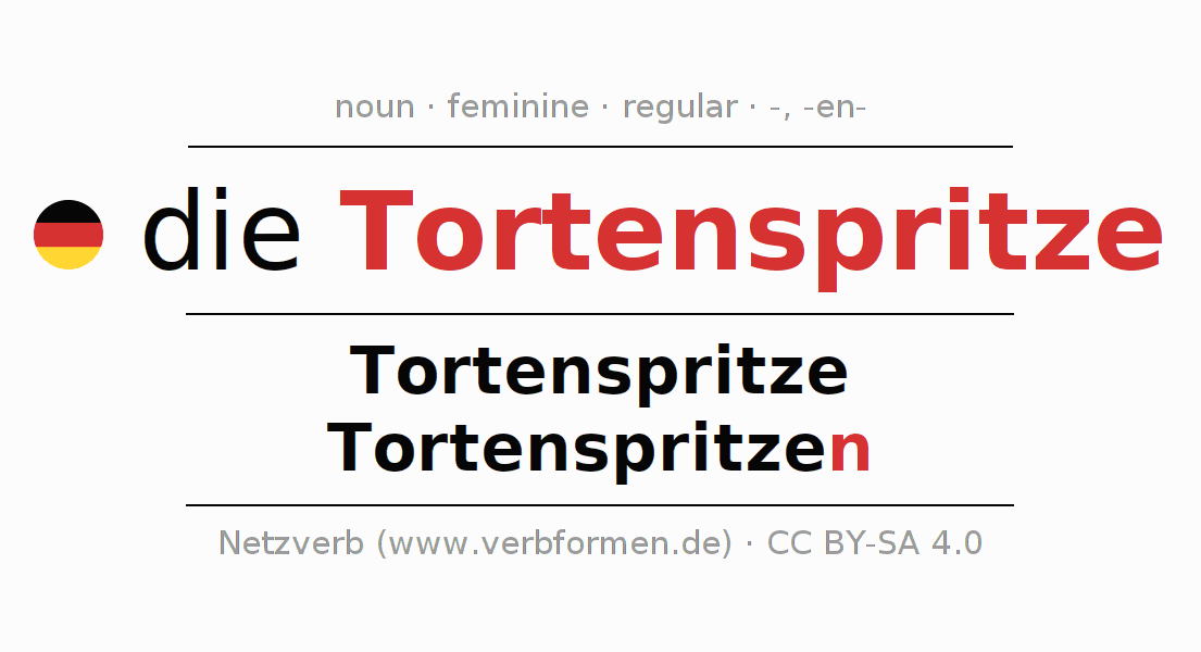 - Singular: die Tortenspritze, der Tortenspritze, der Tortenspritze, die Tortenspritze