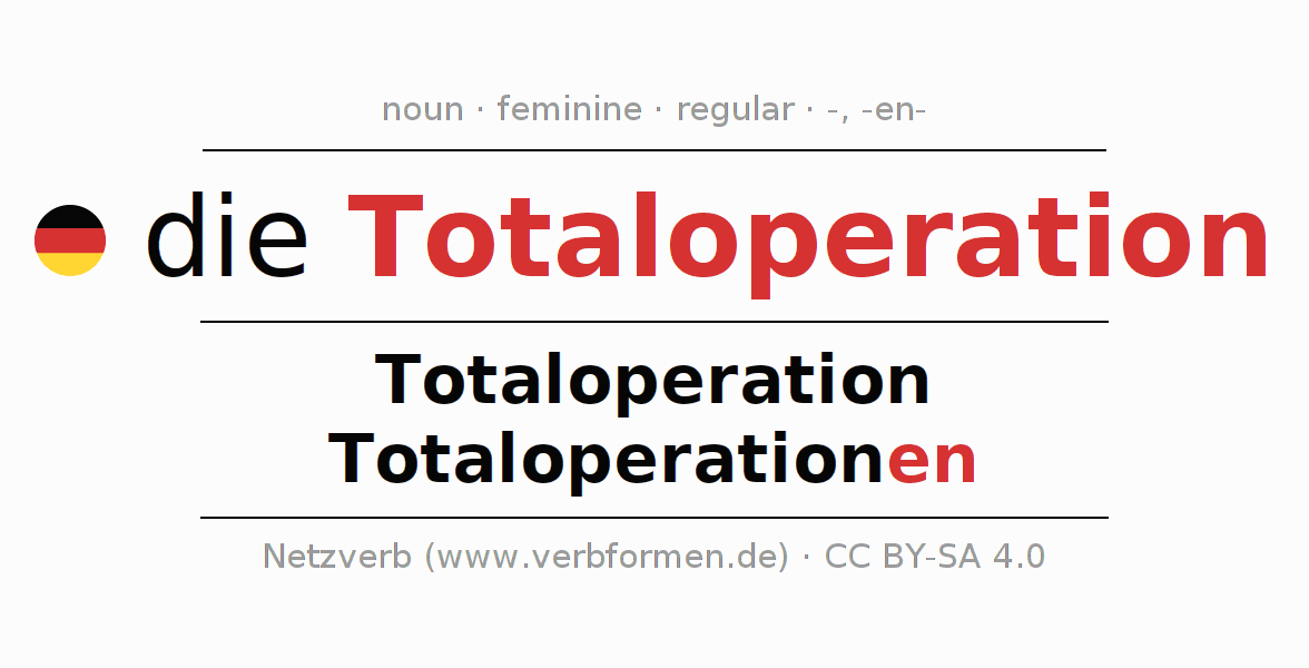 - Singular: die Totaloperation, der Totaloperation, der Totaloperation, die Totaloperation