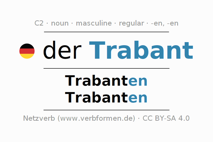 - Plural: die Trabanten, der Trabanten, den Trabanten, die Trabanten