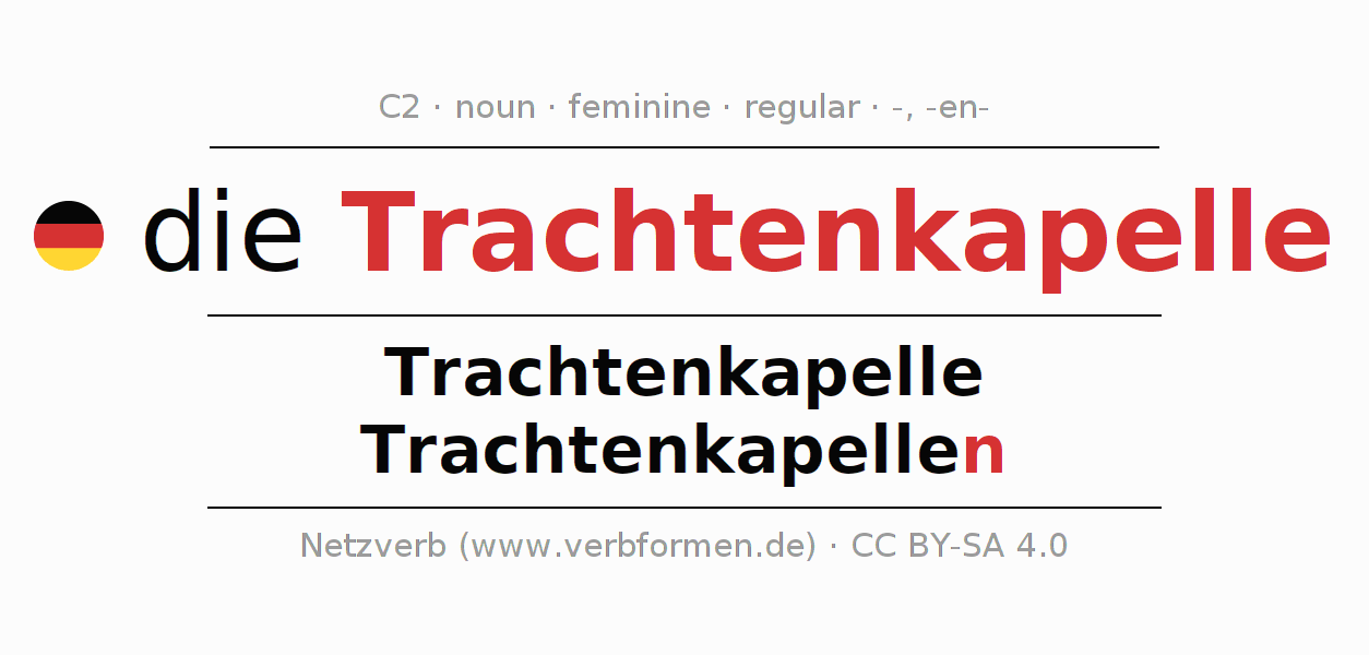 - Singular: die Trachtenkapelle, der Trachtenkapelle, der Trachtenkapelle, die Trachtenkapelle