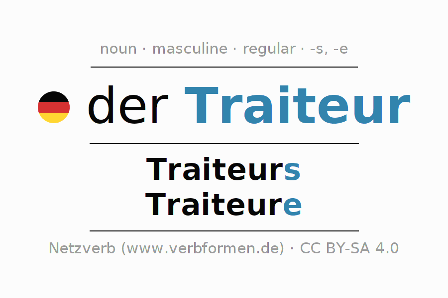 - Singular: der Traiteur, des Traiteurs, dem Traiteur, den Traiteur