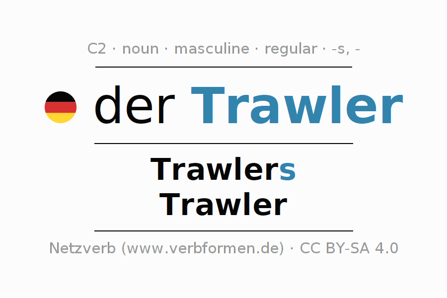 - Plural: die Trawler, der Trawler, den Trawlern, die Trawler