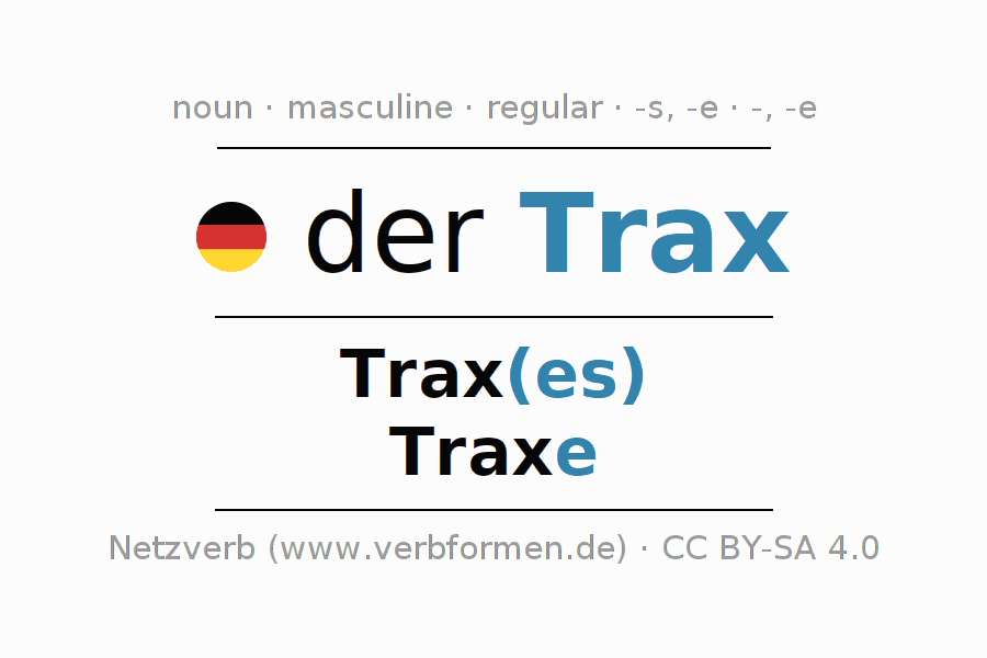- Singular: der Trax, des Trax(es), dem Trax(e), den Trax