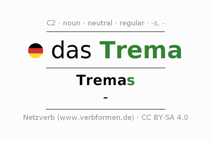 - Singular: das Trema, des Tremas, dem Trema, das Trema
