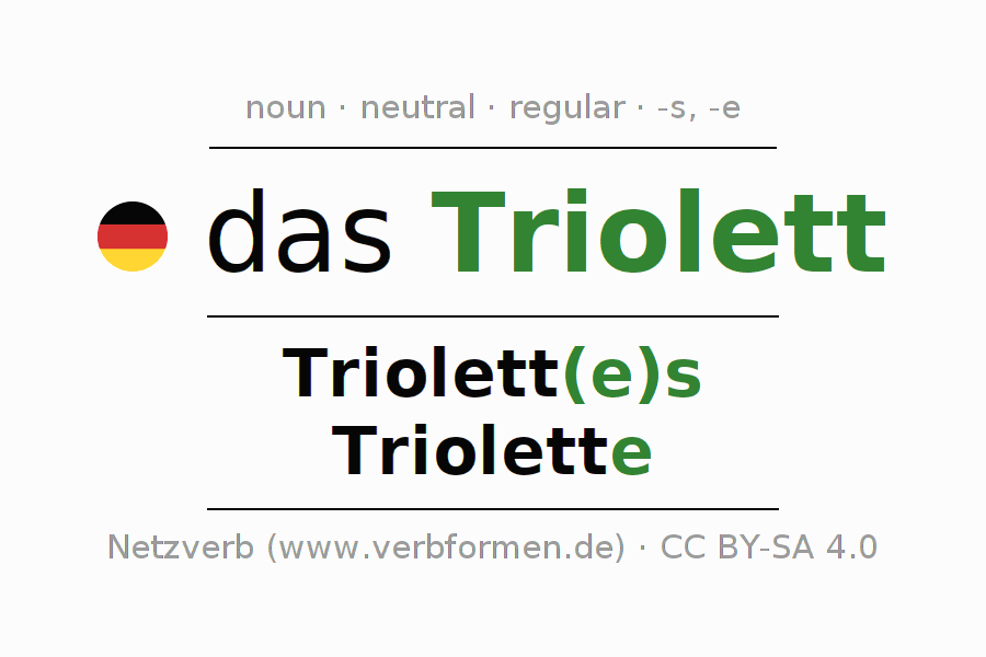 - Singular: das Triolett, des Triolett(e)s, dem Triolett(e), das Triolett