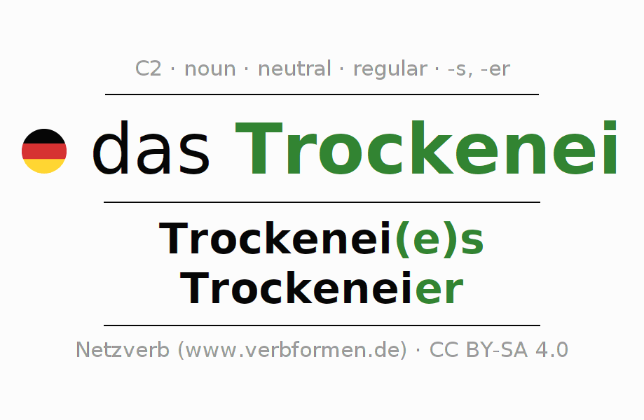 The declension of Trockenei as a table with all forms in singular (singular) and plural (plural) and in all four cases nominative (1st case), genitive (2nd case), dative (3rd case) and accusative (4th case). Especially for German learners the correct declension of the word Trockenei is crucial.
