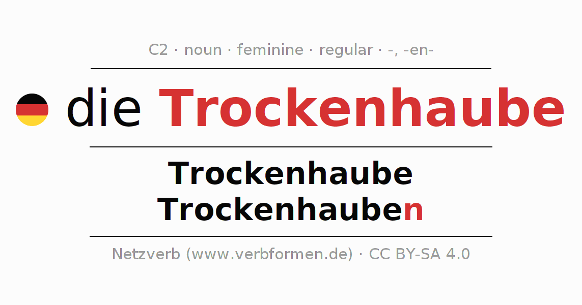 - Singular: die Trockenhaube, der Trockenhaube, der Trockenhaube, die Trockenhaube