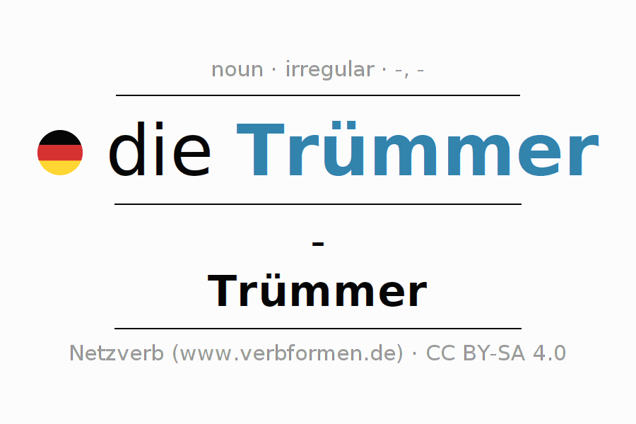 - Plural: die Trümmer, der Trümmer, den Trümmern, die Trümmer