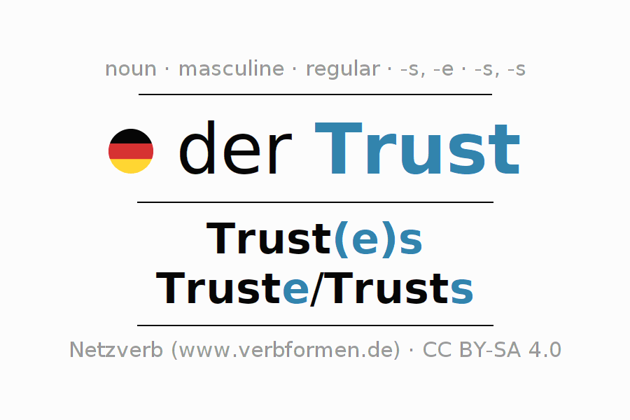 - Singular: der Trust, des Trust(e)s, dem Trust(e), den Trust