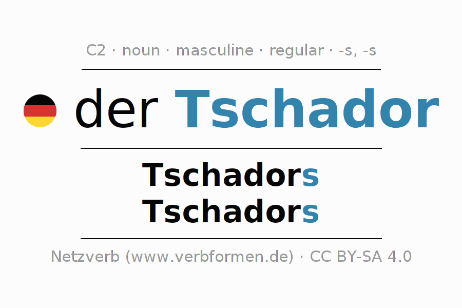 - Singular: der Tschador, des Tschadors, dem Tschador, den Tschador