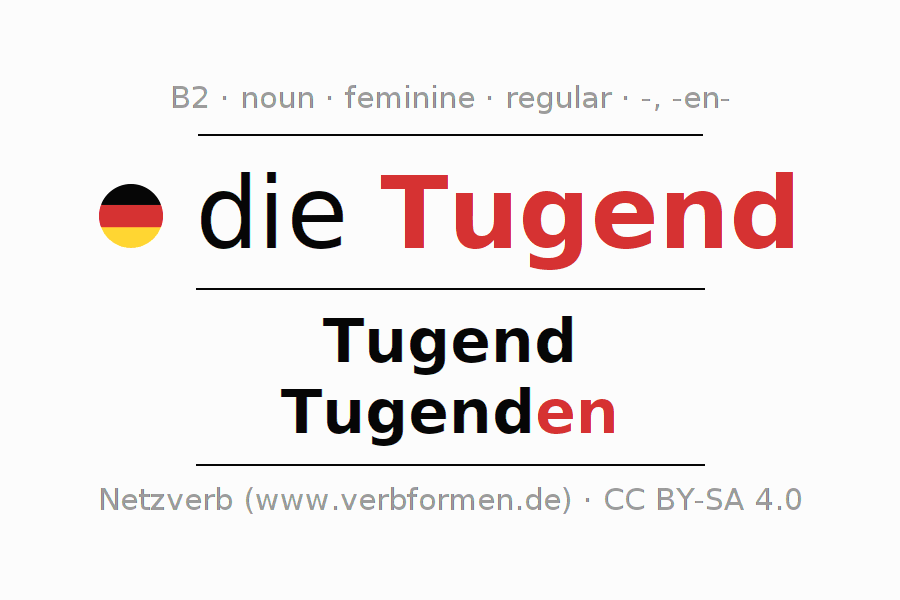- Singular: die Tugend, der Tugend, der Tugend, die Tugend