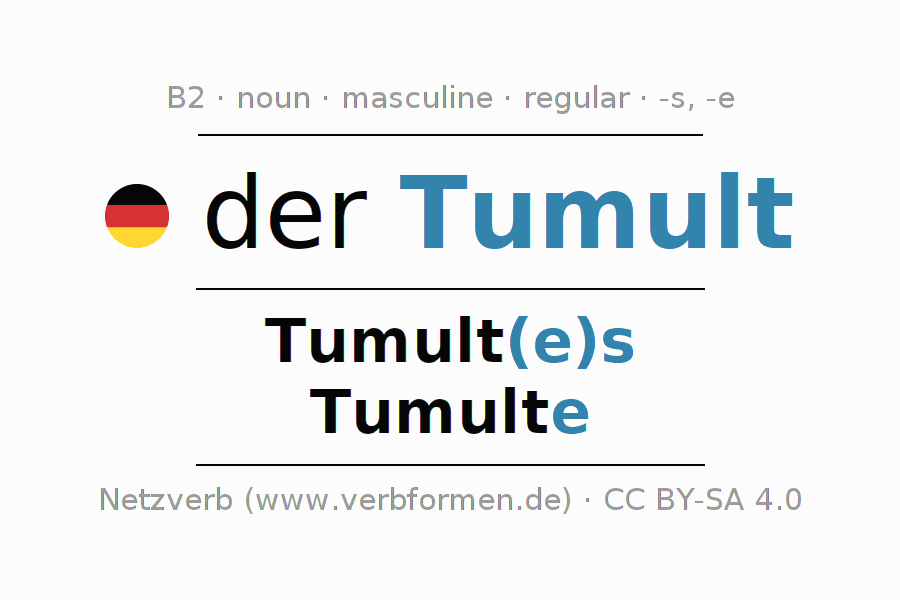 - Singular: der Tumult, des Tumult(e)s, dem Tumult(e), den Tumult