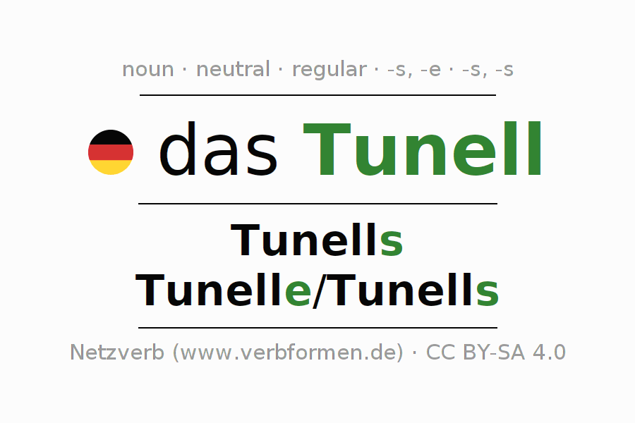 - Singular: das Tunell, des Tunells, dem Tunell, das Tunell
