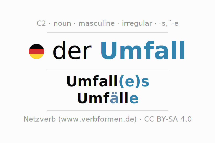 - Plural: die Umfälle, der Umfälle, den Umfällen, die Umfälle
