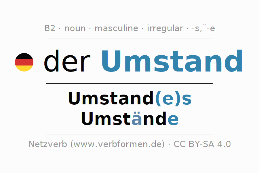 - Plural: die Umstände, der Umstände, den Umständen, die Umstände
