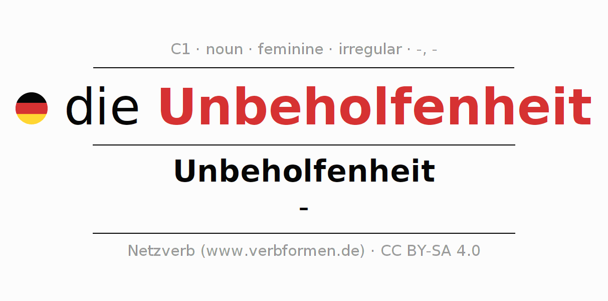 The declension of Unbeholfenheit as a table with all forms in singular (singular) and plural (plural) and in all four cases nominative (1st case), genitive (2nd case), dative (3rd case) and accusative (4th case). Especially for German learners the correct declension of the word Unbeholfenheit is crucial.