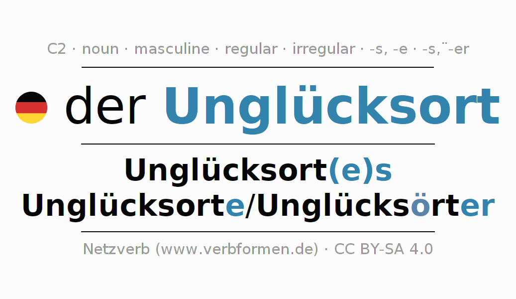 | Acc. | den Unglücksort | die Unglücksorte/Unglücksörter |
