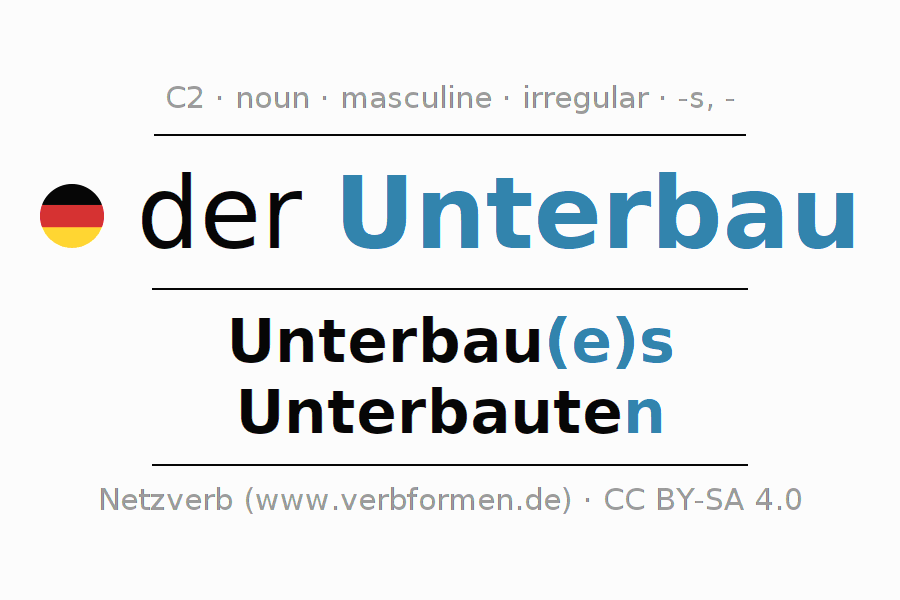 - Singular: der Unterbau, des Unterbau(e)s, dem Unterbau, den Unterbau