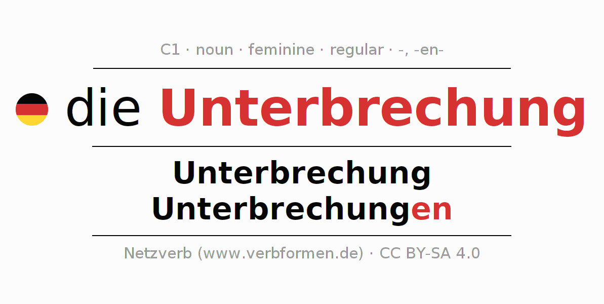 - Singular: die Unterbrechung, der Unterbrechung, der Unterbrechung, die Unterbrechung