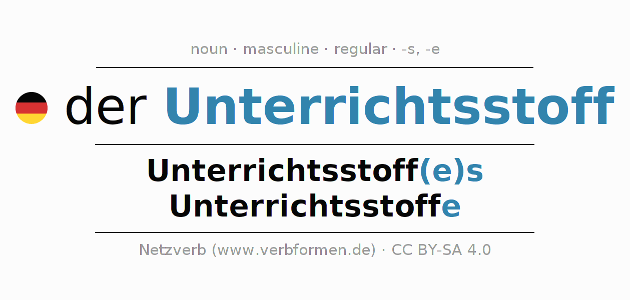 | Nom. | der Unterrichtsstoff | die Unterrichtsstoffe |