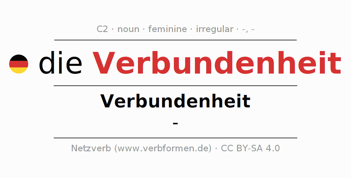 - Singular: die Verbundenheit, der Verbundenheit, der Verbundenheit, die Verbundenheit
