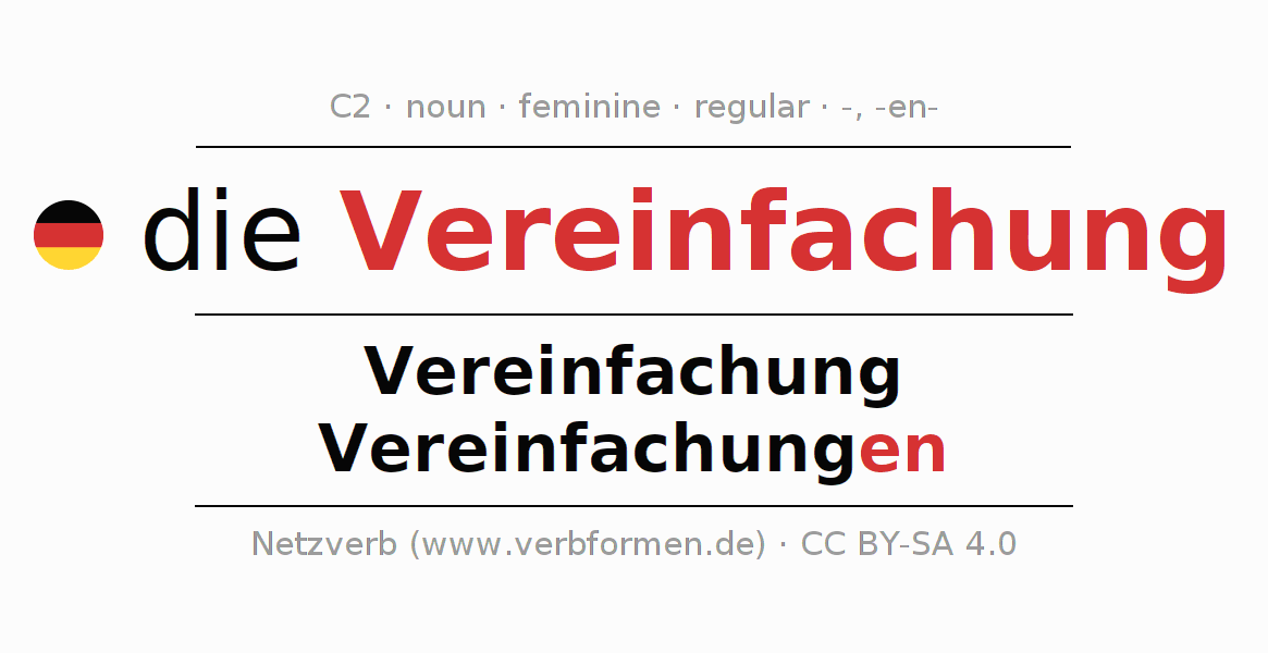 - Singular: die Vereinfachung, der Vereinfachung, der Vereinfachung, die Vereinfachung