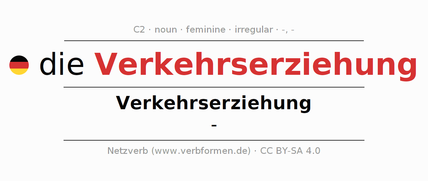 - Singular: die Verkehrserziehung, der Verkehrserziehung, der Verkehrserziehung, die Verkehrserziehung