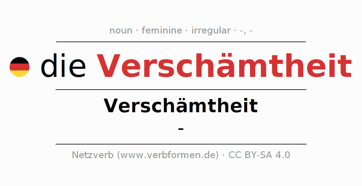 - Singular: die Verschämtheit, der Verschämtheit, der Verschämtheit, die Verschämtheit