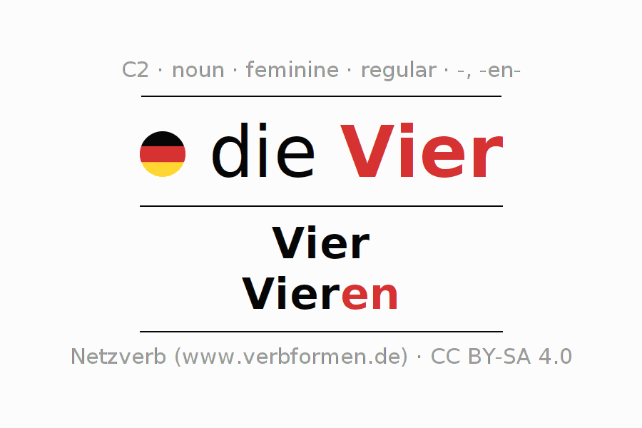 - Plural: die Vieren, der Vieren, den Vieren, die Vieren