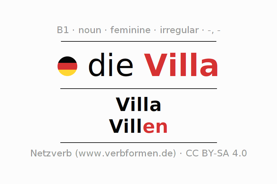 - Plural: die Villen, der Villen, den Villen, die Villen