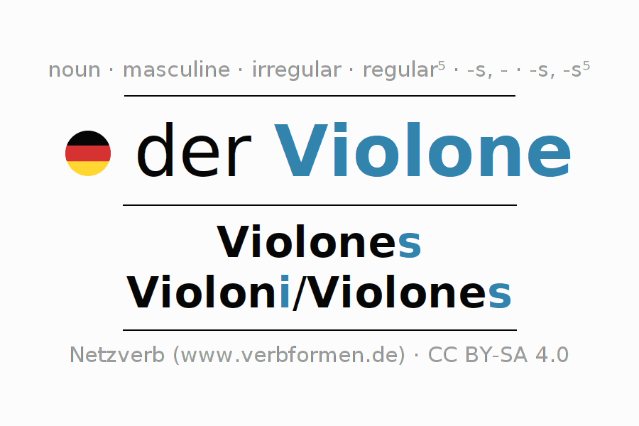 - Singular: der Violone, des Violones, dem Violone, den Violone