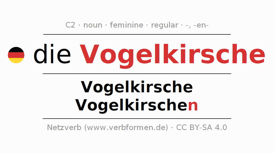 - Singular: die Vogelkirsche, der Vogelkirsche, der Vogelkirsche, die Vogelkirsche