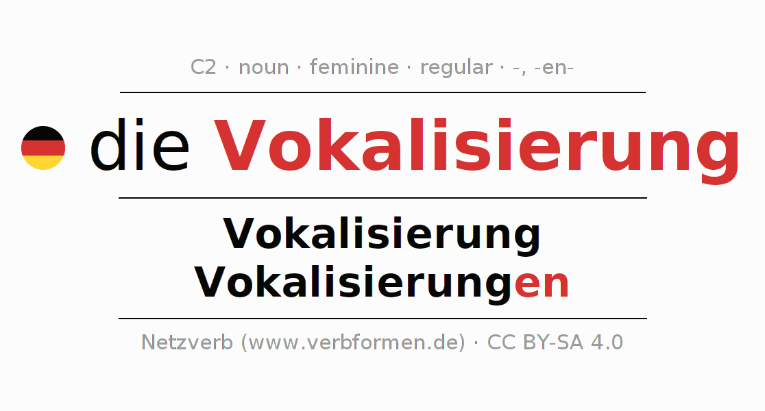 - Singular: die Vokalisierung, der Vokalisierung, der Vokalisierung, die Vokalisierung