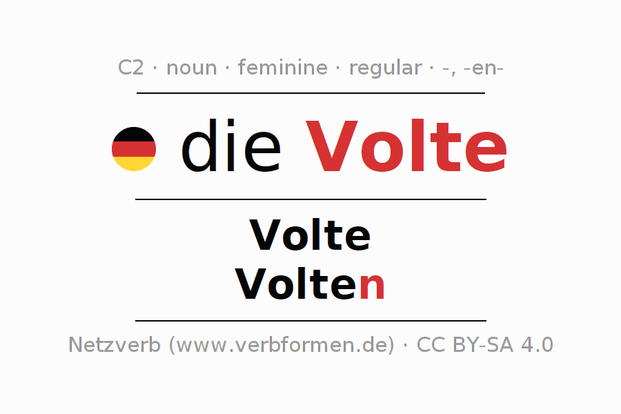 - Singular: die Volte, der Volte, der Volte, die Volte