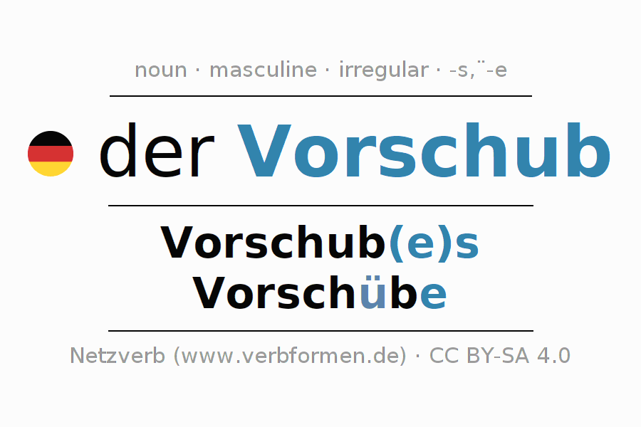 - Plural: die Vorschübe, der Vorschübe, den Vorschüben, die Vorschübe