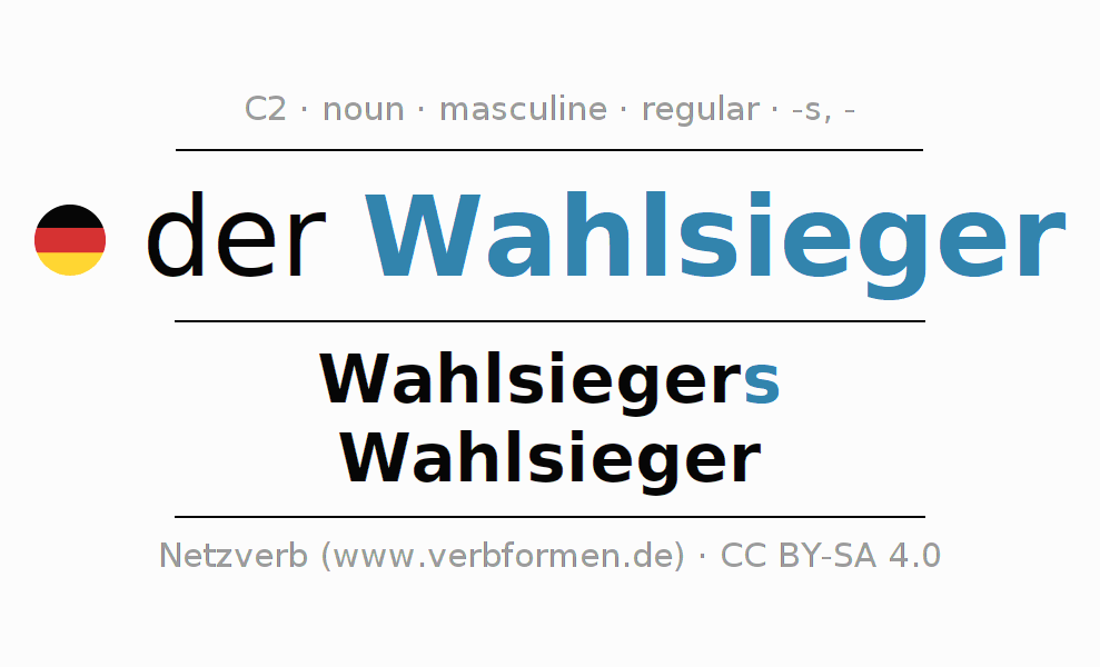 - Singular: der Wahlsieger, des Wahlsiegers, dem Wahlsieger, den Wahlsieger