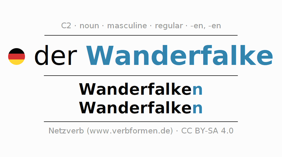 - Singular: der Wanderfalke, des Wanderfalken, dem Wanderfalken, den Wanderfalken