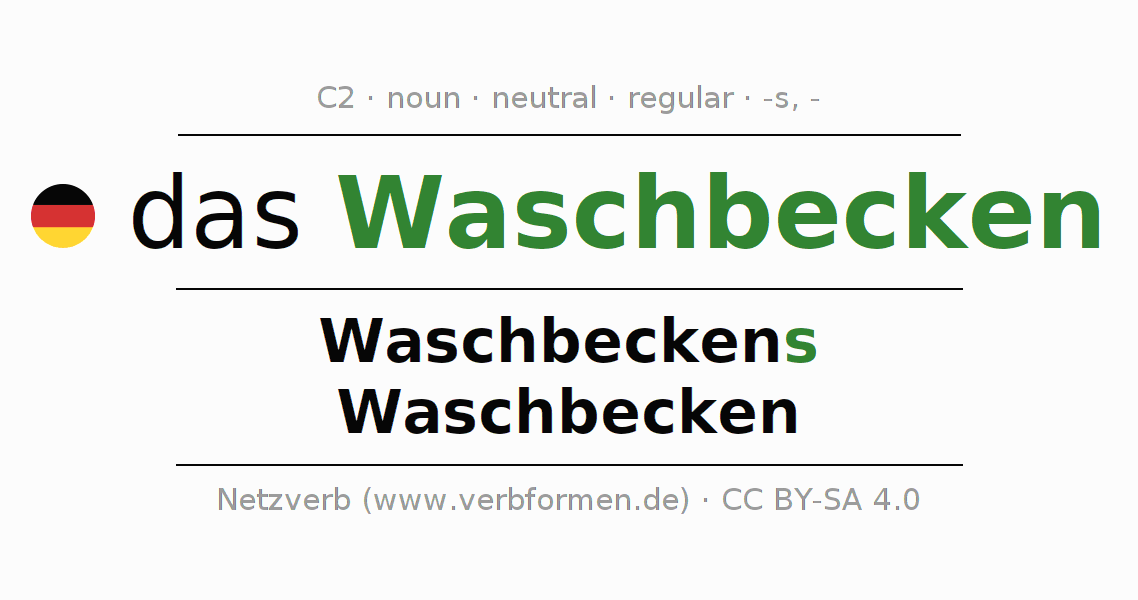 - Singular: das Waschbecken, des Waschbeckens, dem Waschbecken, das Waschbecken