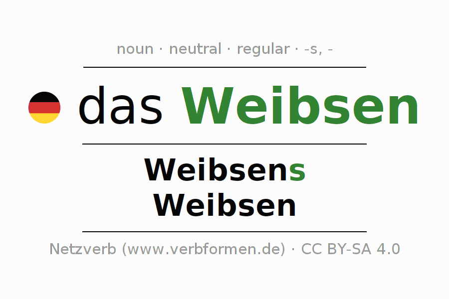 - Singular: das Weibsen, des Weibsens, dem Weibsen, das Weibsen