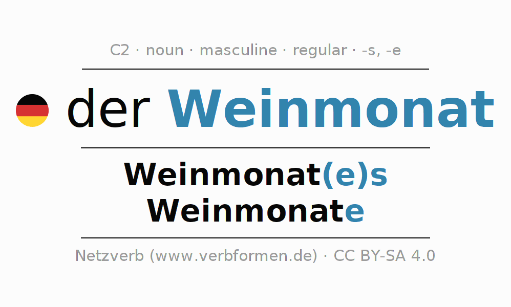 - Singular: der Weinmonat, des Weinmonat(e)s, dem Weinmonat(e), den Weinmonat