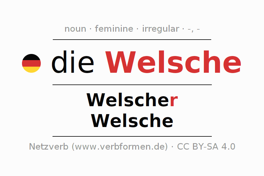 - Plural: die Welschen, der Welschen, den Welschen, die Welschen