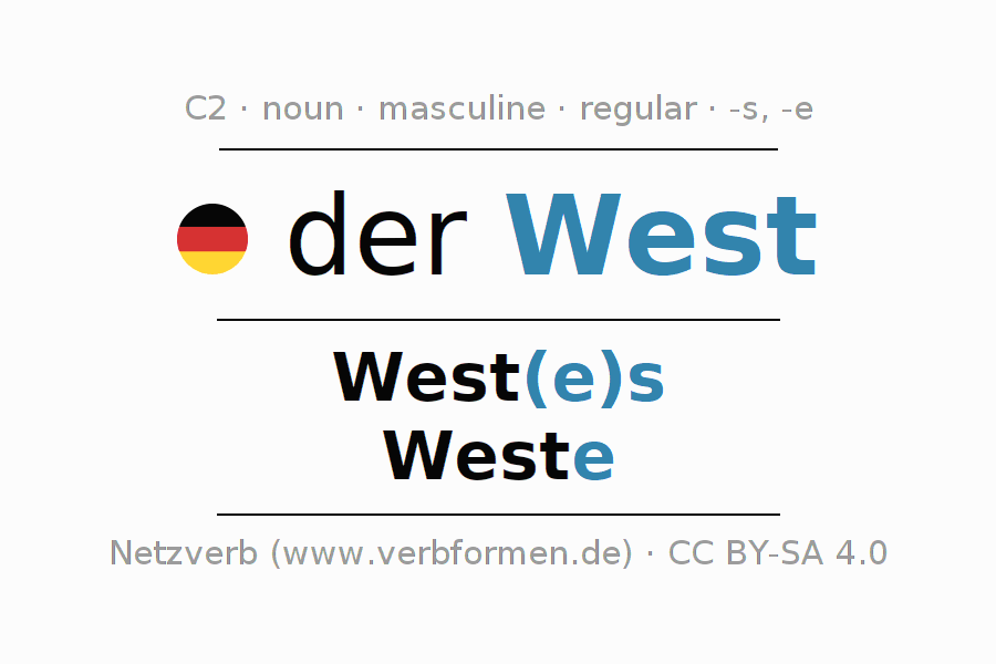 - Singular: der West, des West(e)s, dem West(e), den West