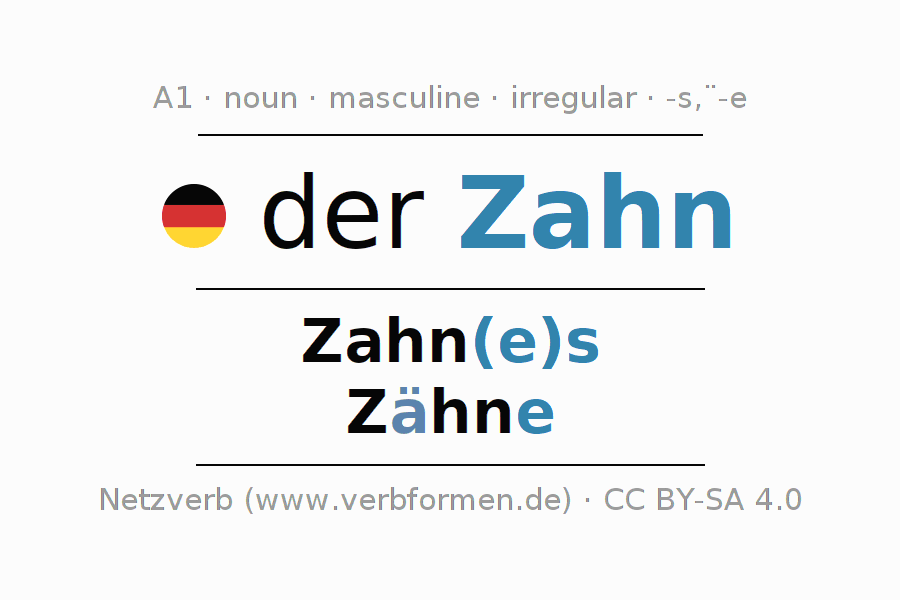 - Plural: die Zähne, der Zähne, den Zähnen, die Zähne