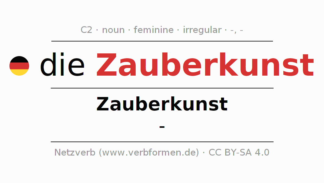 - Singular: die Zauberkunst, der Zauberkunst, der Zauberkunst, die Zauberkunst
