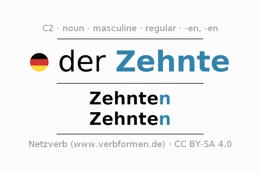 - Singular: der Zehnte, des Zehnten, dem Zehnten, den Zehnten