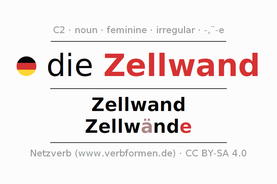 - Singular: die Zellwand, der Zellwand, der Zellwand, die Zellwand