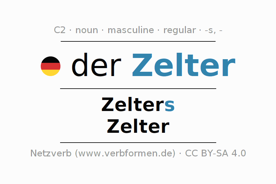 - Singular: der Zelter, des Zelters, dem Zelter, den Zelter