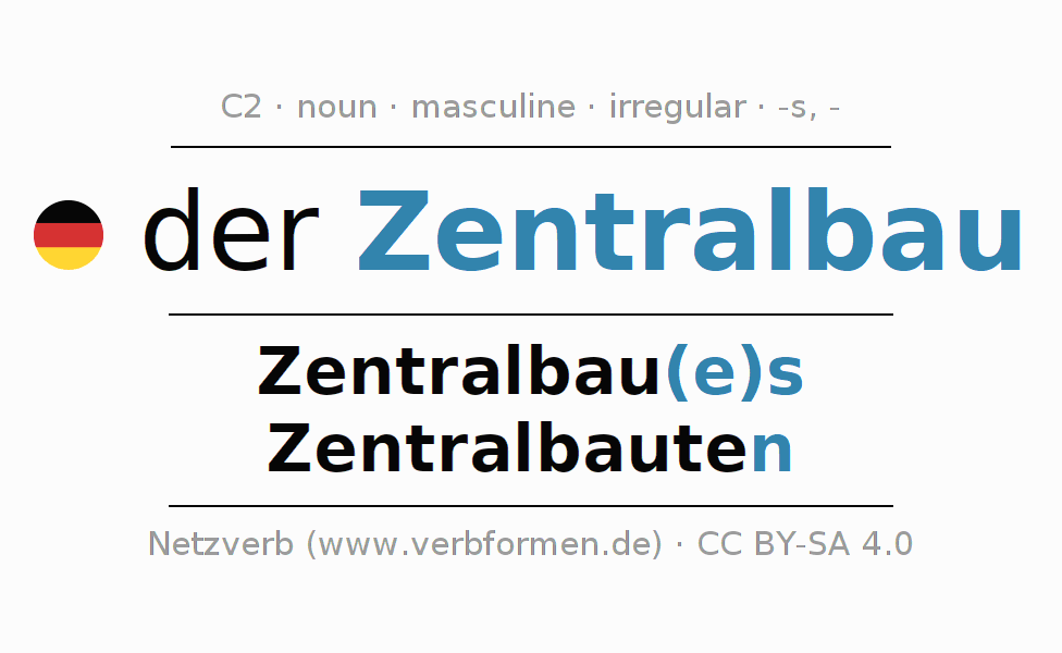 Declension of Zentralbau in singular and plural in all cases