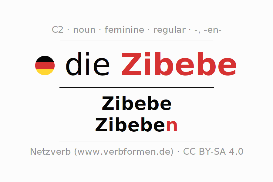 - Plural: die Zibeben, der Zibeben, den Zibeben, die Zibeben